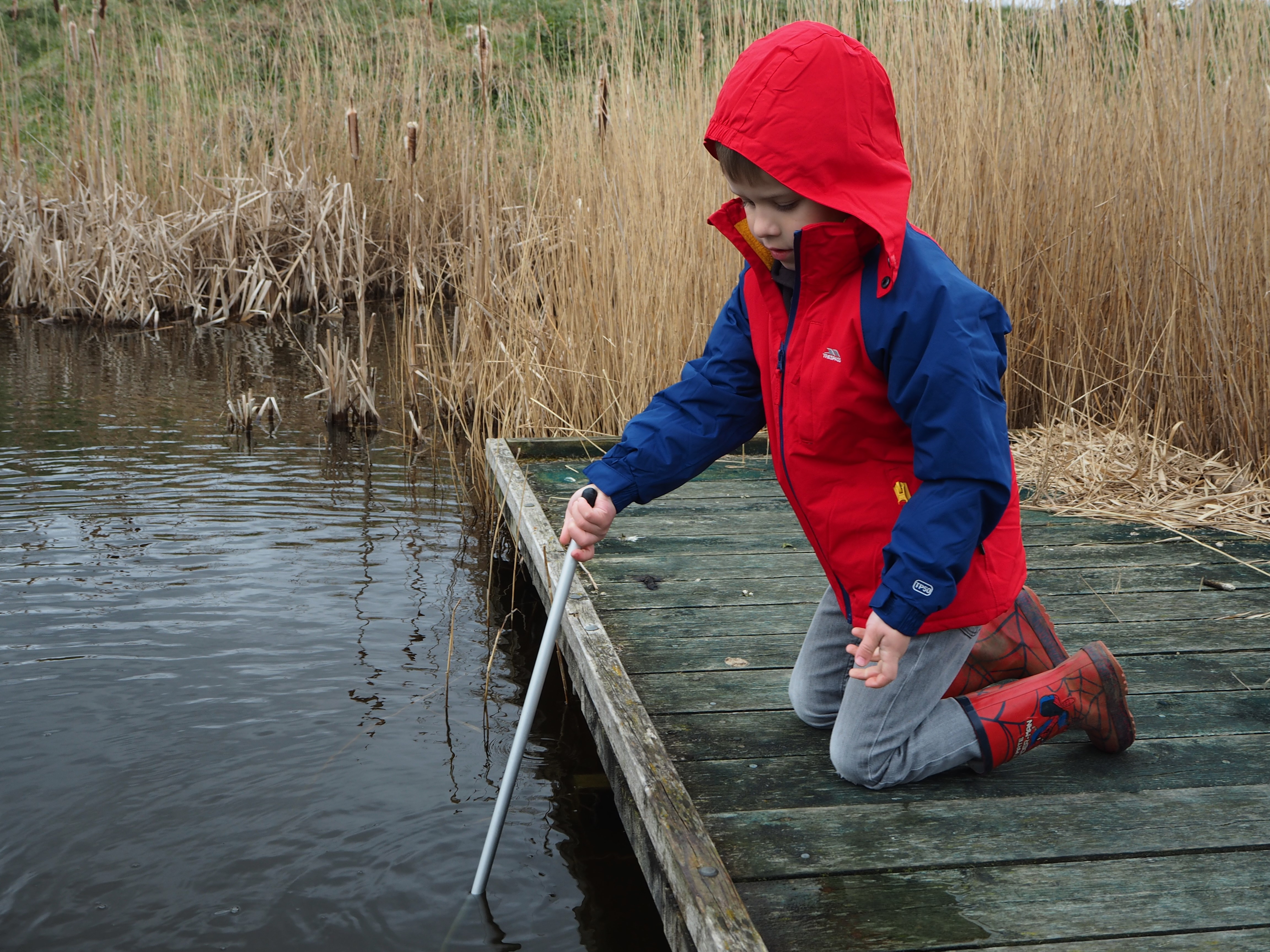 Our first stop was to do a bit of pond dipping, one of the activities out of the Born to be Wild book. We were all given nets to try and see if we could catch any little creatures with them. The kids were beyond excited and really wanted to give it a go, they were lucky and much to their delight they did catch a damselfly nymph.
