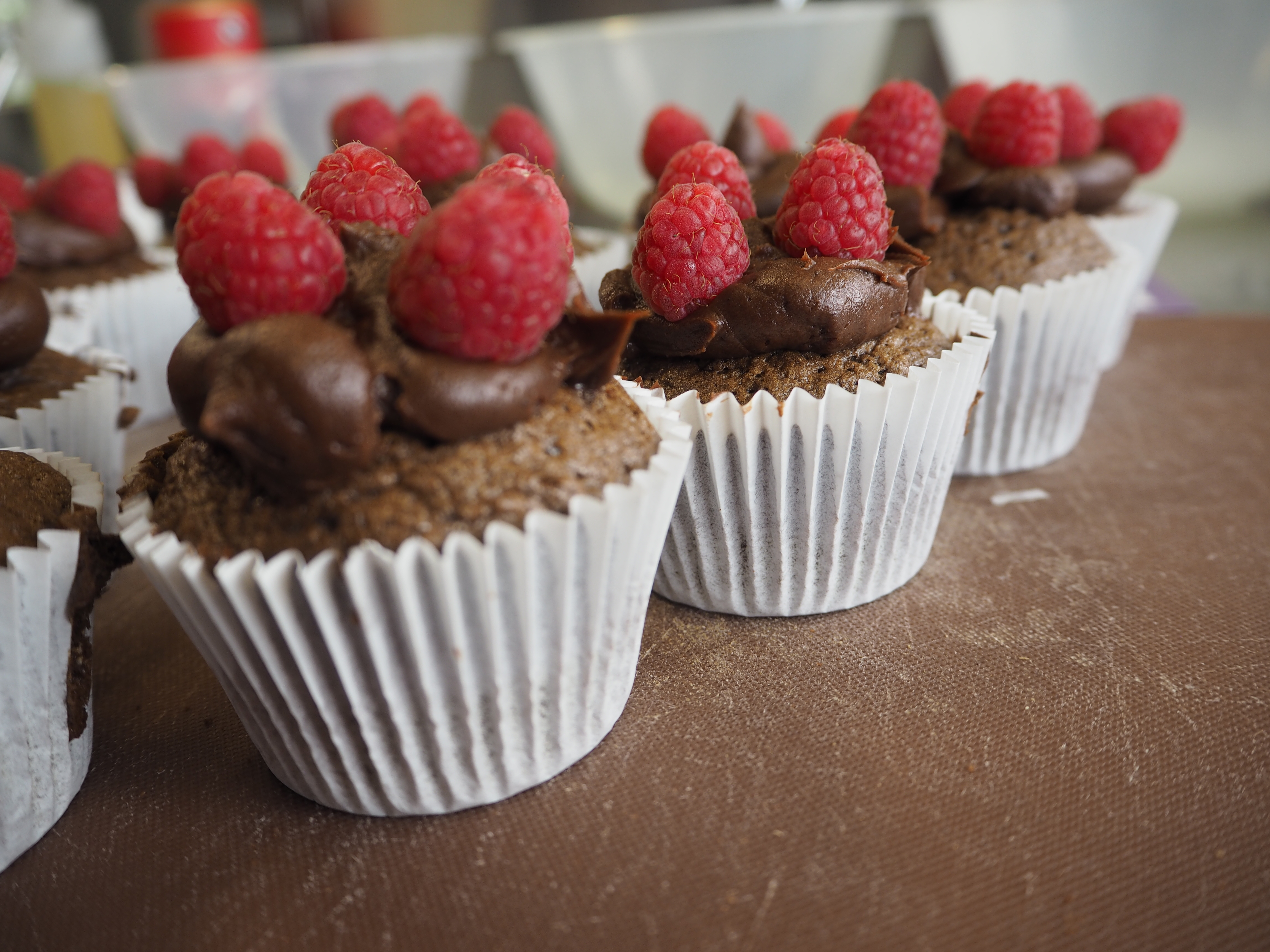 Our baking challenges were to make chocolate and raspberry cupcakes and cheese and herb scones. Now, considering that we had no measurements, oven temperature details or timings, I think we did pretty well.
