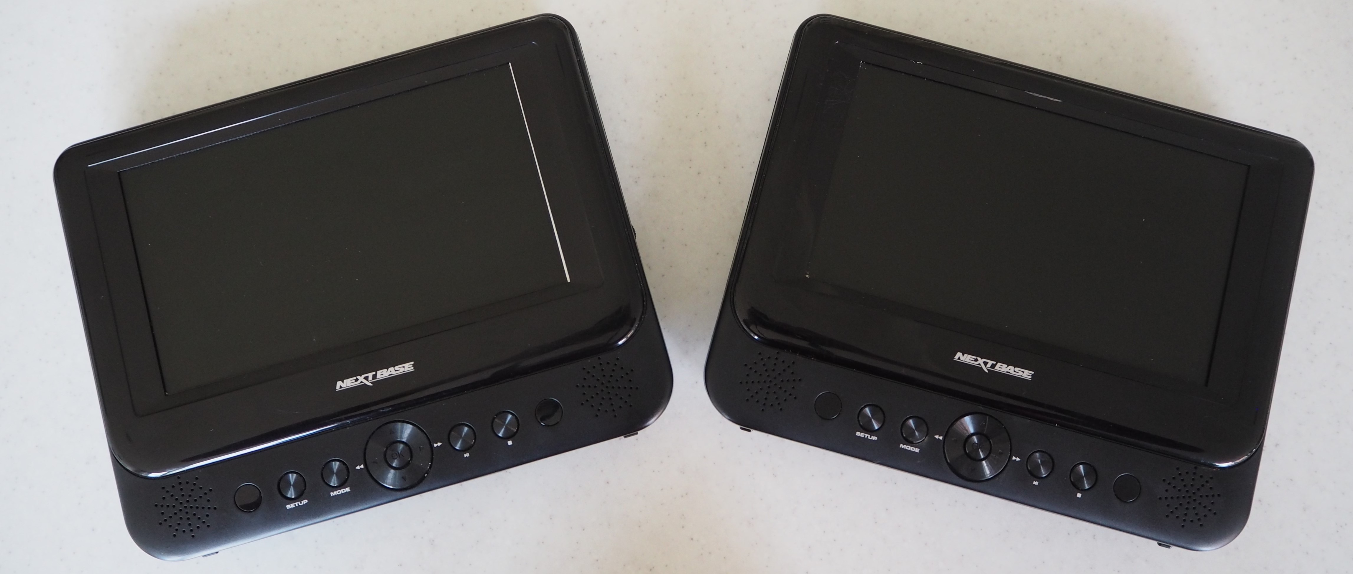 Portable DVD Players, you know the ones you put on the back of the headrest in the car. Each boy has one to avoid arguments. They can stand them upright on the tray on the place, so they can watch whatever they want to.