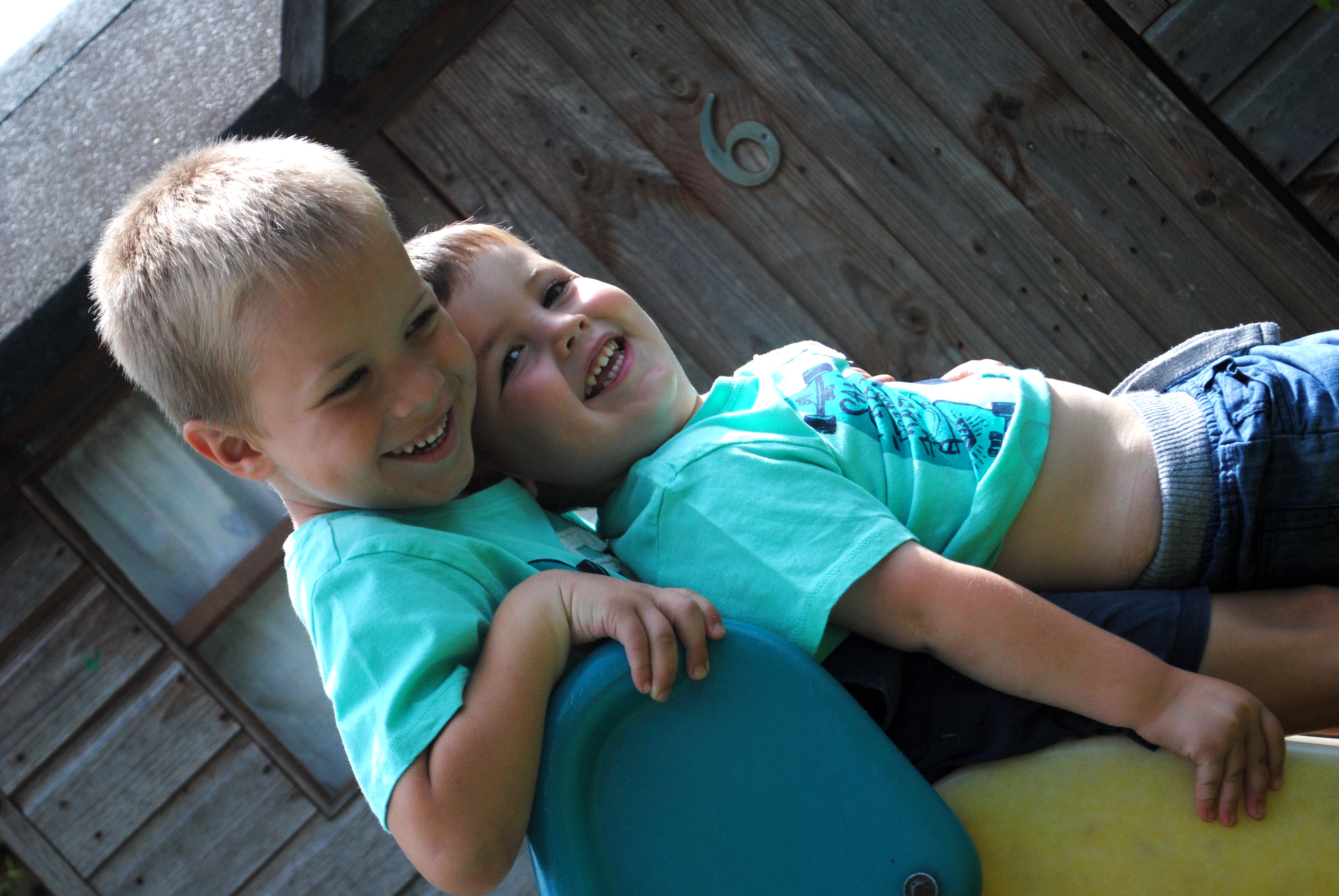 The boys are wearing H&M t-shirts & Next trousers